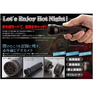 赤外線モードで、暗闇をキャッチ! 闇のむこうを記録に残す。 赤外線ビデオカメラ。 お化け屋敷やキャンプ、夜の動物園などで! 暗闇撮影、動画撮影、静止画撮影、ボイスレコーダーとして!!【赤外線暗視】盗撮厳禁・暗闇で使える小型ビデオカメラ