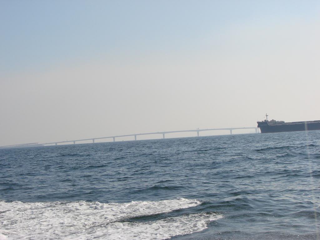 アクアラインを超え大きなタンカーをよそにボートが進む